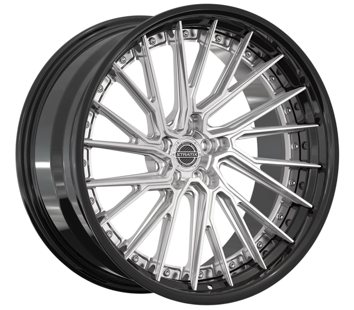 The Stratix 3-Piece Forged (S3F) Series is the pinnacle of bespoke performance and tailored craftsmanship. Built around a fully modular 3-piece forged configuration, each wheel features a precision-cut face, paired with custom inner and outer barrels — allowing for ultra-specific offsets, finishes, and configurations. Constructed from aerospace-grade 6061-T6 aluminum and assembled to exacting tolerances, the S3F line delivers maximum flexibility without compromising strength or balance. Engineered for those who demand total control over stance and style, this is where the standard is redefined.